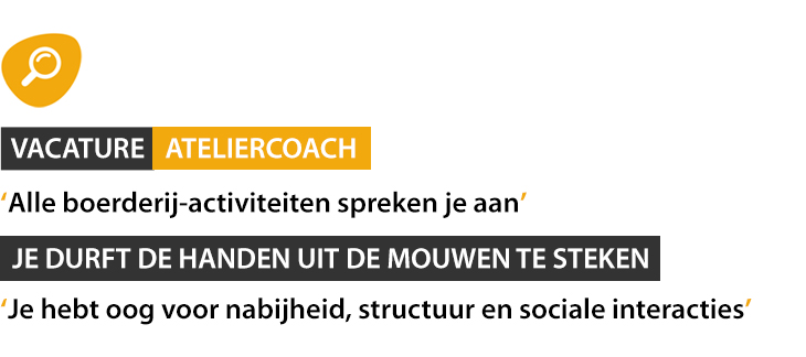 • Samen met je collega’s en de cliënten maak je van het voedingsatelier, het buitenatelier en het Hoevekaffee een fijne en inspirerende plek
